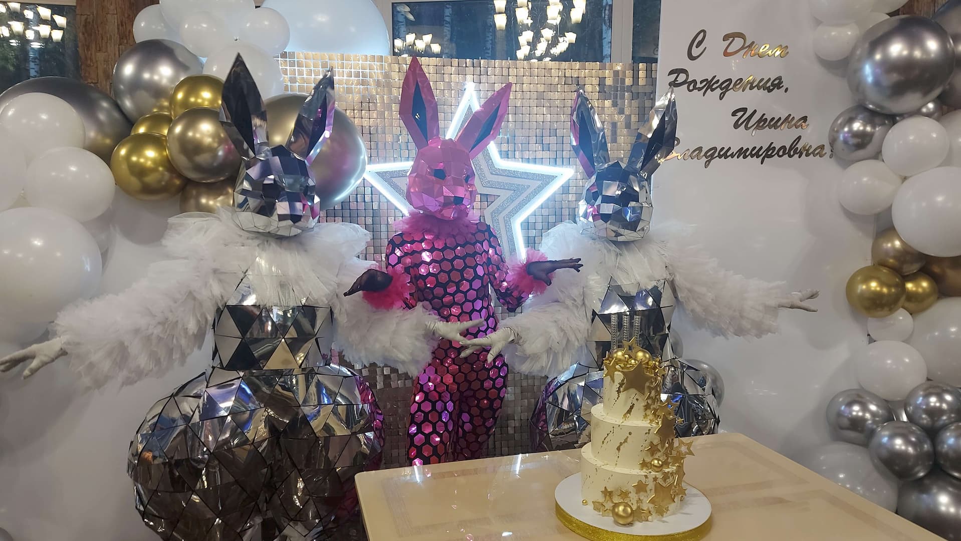 Вынос подарка, зажигательный танец, живая фотозона.