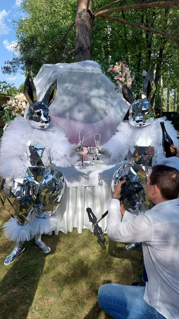 Зеркальные люди сделают Вашу Welcome — зону невероятно красочной. Мы встретим гостей, сделаем несколько фото и сопроводим всех к месту торжества.