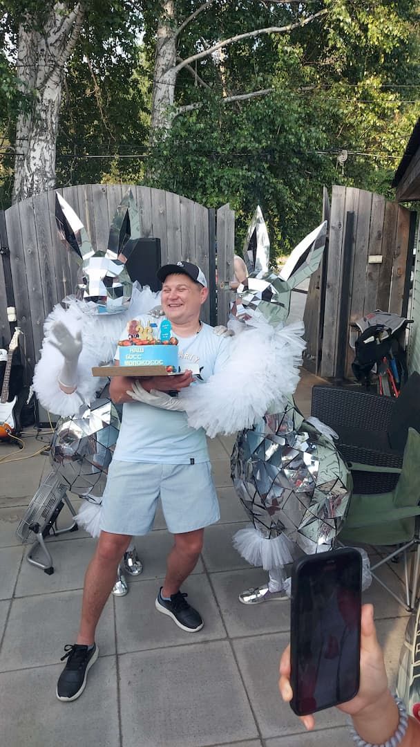 Вынос подарка, зажигательный танец, живая фотозона.