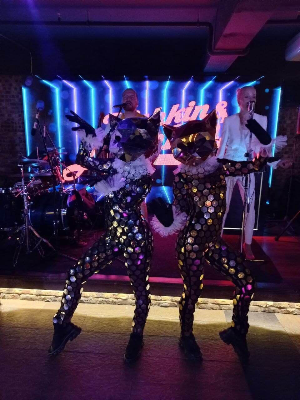 Зеркальные герои создадут танцевальное настроение. Зажгут на танц поле и раскачают гостей. Яркая танцевальная поддержка для cover групп и Dj.